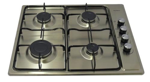 Klasična ugradna ploča za kuhanje s četiri plamenika. Ploča je izrađena od kaljenog stakla i ima "trostruku krunu" - to je plamenik s trostrukim slojem plamena. Rešetke od lijevanog željeza, okretne sklopke, postoji električno paljenje. Radi sigurnosti, ugrađen je sustav za kontrolu plina koji nadzire nekontrolirano otpuštanje plina. Proizvođač je osigurao rad uređaja i iz plinovoda i iz cilindra - što je odlična opcija za seosku kuću ili seosku kuću, gdje se može prekinuti dovod plina.