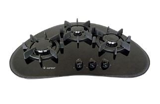 Šik model u radnoj ploči od crnog i kaljenog stakla. Uključen je i adapter za WOK posuđe. Postoji automatsko električno paljenje. Značajka modela - samo tri plamenika, koji nisu sasvim racionalni. U udaljenom kutu nalazi se najčešće korišteni gorionik s prosječnom snagom. Nisu pronađeni drugi nedostaci modela - sve izgleda uredno i kvalitetno. Uređaj radi bez kvarova.