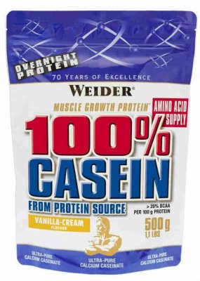 Ljudi koji idu na skup mišića ne bi trebali gladovati gladni. Druga stvar je da bi se njihov večernji obrok trebao sastojati od visoko-proteinskih namirnica s najmanjim sadržajem kalorija. To je upravo slučaj s proteinskim trešnjama s kazeinom iz dobro poznatog branda. Weider, Da biste dobili piće, potrebno je otopiti 1,5-2 kuglice praška u 300 ml mlijeka - s takvim troškom, pakiranje od 500 grama dovoljno je za oko 20 obroka.