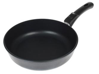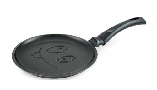 Naziv pan-a “Veseli osmijeh” govori sam za sebe. Poseban žlijeb na dnu omogućuje pečenje palačinki s prekrasnim uzorkom. Izrađena je od lijevanog aluminija i ima premaz bez dna. Usput, ona dostiže 6 mm debljine, koja osigurava najjednolikije zagrijavanje posuđa. Povoljno je ispeći palačinke u ovoj tavi, jer ima optimalni promjer (22 cm) i male stranice visine 2 cm, koji se može prati u perilici posuđa, ne zahtijeva posebnu njegu. Radi praktičnosti opremljen je ručkom ergonomskog oblika. Sudeći po ocjenama, "Merry Smile" je pogodan za prženje palačinki bez ulja.