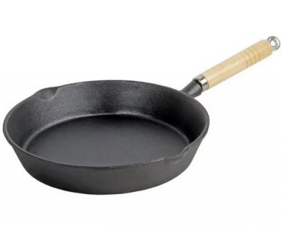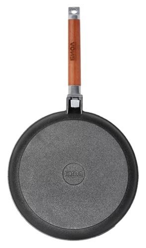 Tava za pečenje Biol 04241 ukrajinske proizvodnje ima povećani promjer od 24 cm, a namijenjen je za prženje palačinki, uštipaka, palačinki itd. Glavna značajka modela je drvena ručka koja se može ukloniti, a koja je izrađena u modernom dizajnu. Posuda se može koristiti kao oblik za pečenje u pećnici, što je vrlo povoljno. Izrađena je od lijevanog željeza visoke čvrstoće. Palačinke na njemu su posebno ukusne, jer ravnomjerno zagrijati. Debljina dna je čak 4 mm. Nakon kuhanja zadržava toplinu dugo vremena.