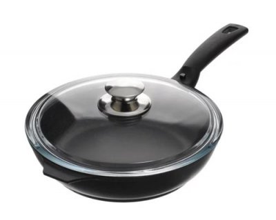 Posebno mjesto u vrhu najboljeg zauzima ruski brand Kukmara - jedan je od najpopularnijih na domaćem tržištu. Cijenjena je zbog visoke kvalitete proizvoda i njihove trajnosti. Tradicionalna posuda izrađena je od lijevanog aluminija i ima izdržljiv keramički premaz Greblon Non-Stick C2 + tehnologijom. Ne emitira štetne tvari pri zagrijavanju na 450 stupnjeva. Može se staviti u pećnicu, jer ručka je uklonjena. Stroj za pranje posuđa odobren. Promjer vrha je 26 cm, što će biti optimalno za obitelj od 3 osobe. Visina bočnih stranica jednaka je 6 cm, a posebna prevlaka omogućuje da se tava koristi za prženje hrane na minimalnoj količini ulja bez opasnosti od paljenja.