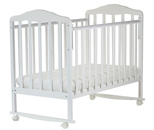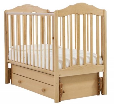 Pravokutni krevetić standardnog dizajna izgleda prilično uobičajeno, ali je iznenađujuće kvalitetan. Za njegovu proizvodnju koriste se prirodni, savršeno obrađeni, polirani, prekriveni drvom sigurna boja. Model je dostupan u nekoliko boja - bijelo, svijetlo ili tamno drvo. Pouzdani kotači opremljeni su čepom, za praktičnost pohranjivanja dječje odjeće pruža prilično prostranu kutiju. Dizajn je vrlo izdržljiv, ali je iznimno jednostavan za montažu - čak i po ovom parametru proizvoda može se zaključiti da je visokokvalitetan. Čak i djevojka može sastaviti krevetić.Mlade majke kao da je bočni zid vrlo lako i tiho spušten - po njihovom mišljenju, vrlo je važno ne probuditi dijete.