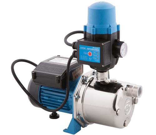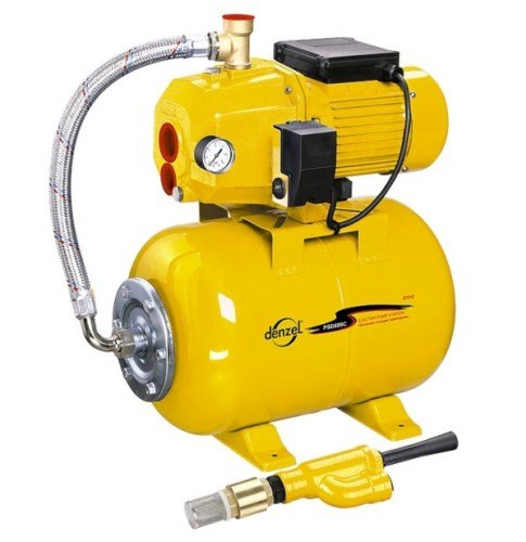 Najbolja opcija za organizaciju vodoopskrbnog sustava je korištenje crpne stanice DENZEL PSD800C. Zahvaljujući maksimalnom tlaku od 45 m, uređaj može podići vodu iz bušotina i bušotina. Dubina usisavanja je 20 m. Zahvaljujući snažnom električnom motoru (800 W), postaja ima pristojnu propusnost (2,4 kubika na sat). Proizvođač je opremio crpku automatizmom, koji samostalno uključuje i isključuje elektromotor dok se voda troši.