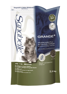 Velike mačke trebaju više od hrane. Njihovi mišićno-koštani i kardiovaskularni sustavi pod velikim su stresom. Često njihove čeljusti nisu prikladne za hvatanje i lomljenje malih komadića. S ovim značajkama stvorena je hrana Bosch Sanabel Grand.Brašno od školjaka je vrijedan izvor kondroitina i glukozamina neophodnih za zglobove, laneno sjeme i riblje ulje opskrbljuju kardiovaskularni sustav polinezasićenim masnim kiselinama. Brusnice, borovnice, nevena - izvori vitamina i antioksidanata. Dakle, ova hrana zauzima svoje mjesto u rangiranju kao najbolja dijeta za mačke velikih pasmina.