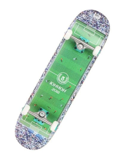 Proizvod je opremljen kotačima standardnog promjera od 5,3 cm za ovu vrstu dasaka, čija je krutost, prema oznaci, 102A. Prema povratnim informacijama iz klizača, predviđeni ležajevi ABEC 7 omogućuju izvrsnu brzinu na cestama s različitim površinama. Dizajn zaslužuje posebnu pozornost. Ove godine posvećena je trend nogometnoj temi. Svjetsko prvenstvo - 2018. u Rusiji je gotovo, ali interes za aktivne sportove ostaje. Potražnja potrošača za modelom potvrđuje da su navijači nacionalnog tima puno.