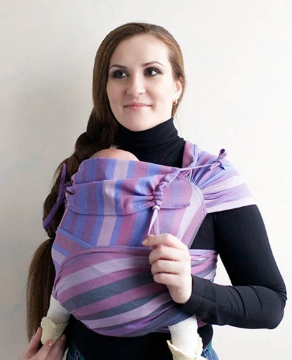 Tabatai May-Sling tvrtke AMAMA dizajnirana je za novorođenčad i starije bebe (do 2 godine starosti). Model ima podesivu širinu leđa, što je posebno važno, uzimajući u obzir konstantan rast djeteta.Savršeno drži vrat i glavu, opremljen je prikladnom kapuljačom koja štiti od naleta vjetra i lošeg vremena. Materijal - prirodni pamuk.