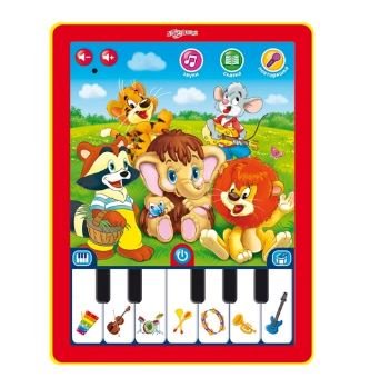Razvijanje tableta s mogućnošću podešavanja zvuka i ugrađenog klavira. Svakoj tipki dodijeljena je određena nota, a kada se prebacite u način glazbenog instrumenta, tipka reproducira poznate melodije koje se izvode na određenim glazbenim instrumentima. Likovi nacrtani na zaslonu također komuniciraju s mladim korisnikom - pjevajući pjesme, izgovarajući fraze. Zvuk je ugodan, kvalitetan - nema osjeta mehaničkog naglaska, buke i bakalara.