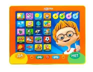 Šarena tableta u razvoju s četiri melodije i ogromnom bazom pitanja o različitim temama. Tema je odabrana odgovarajućim gumbima, postoji priroda, kućni ljubimci, praznici, farma, sport, Zemlja itd. Za odgovor na pitanje postoje dva gumba: "Da" i "Ne". Zvuk je podesiv.