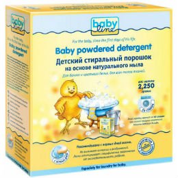 Unatoč činjenici da prirodni sapun u ovom alatu uzima prvu liniju, ovdje su također prisutni anionski i ne-anionski surfaktanti. Osim toga, BabyLine sadrži fosfate. Prednost alata je u tome što može učinkovito prati odjeću, čak iu hladnoj vodi iu ručnom načinu rada. Osim toga, prašak je dobro ispran, praktički bez mirisa i vrlo je ekonomično potrošen (za 1 pranje potrebno je samo 45 grama proizvoda).
