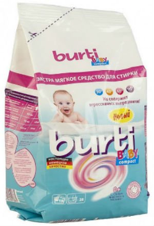 Baza sapuna Burti Compact Baby sastoji se od prirodnih surfaktanata (neionskih i anionskih deterdženata), kao i relativno bezopasnih zeolita. Također sadrži enzime i okuse. Općenito, formula ovog dječjeg proizvoda odgovara potrošačima. Prema ocjenama kupaca, prah ne zadovoljava kontaminaciju proteinima, ali je vrlo dobar kod svih ostalih, čak iu hladnoj vodi.