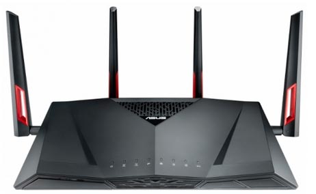 Vođa rangiranja najboljih Wi-Fi routera u premium segmentu je ASUS RT-AC88U model. Glavna značajka ovog uređaja je mogućnost pružanja istodobnog rada nekoliko desetaka uređaja, zahvaljujući maksimalnoj brzini prijenosa podataka do 3167 Mbps. Široku pokrivenost i dobru razinu signala osiguravaju četiri antene koje rade u frekvencijskim područjima od 2,4 GHz i 5 GHz.