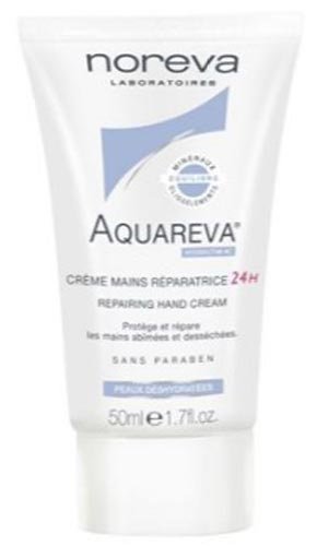 Francuska krema za ruke Noreva Laboratories Aquareva je vrlo pogodna za osjetljivu kožu. Ima pozitivan učinak ne samo na rukama, već i na noktima. To čini kutikulu mekom i hidratiziranom. Spriječava foliaciju noktiju. Tekstura kreme je savršena, jer umjereno masna i svjetla. Štedi kožu od suhoće, ispunjava je vlagom i hranjivim elementima. Borba protiv iritacije i upale, ima smirujući učinak. Brzo omekšava kožu.