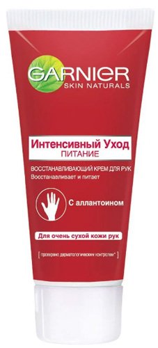 Tvrtka GARNIER je super hranjiva krema za ruke "Intenzivna njega", koja zauzima siguran položaj na vrhu najbolje. Namijenjen je svakodnevnoj uporabi i ima dobra zaštitna svojstva. Sprečava prerano starenje kože, pojavu bora i pukotina. Prikladno za vrlo suhu i oštećenu kožu, aktivno je vraća. Redovita njega s GARNIER kremom čini ruke dobro njegovanim, a kožu mekom i mekom. Tijekom vremena nestaju oštećenja, kurje oči, itd. Među komponentama je alantoin, koji ima snažan iscjeljujući učinak, i glicerin, koji je odgovoran za zaštitu od negativnih čimbenika.