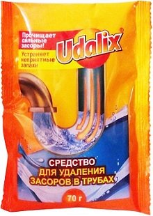 Najpoželjniji i najdjelotvorniji lijek za čišćenje duboko začepljenih odvoda i kanalizacije. U srcu "Potkhane" je kombinacija surfaktanata i kaustične sode, stvarajući neku vrstu "eksplozivne smjese" samo drugačije primjenjivosti. Da bi prah počeo s radom, mora se isporučiti vruća voda i nakon 3 minute postići željeni rezultat. Međutim, ne preporučuje se prečesto pribjegavati njegovoj uporabi: u tu svrhu treba odabrati manje agresivan lijek.