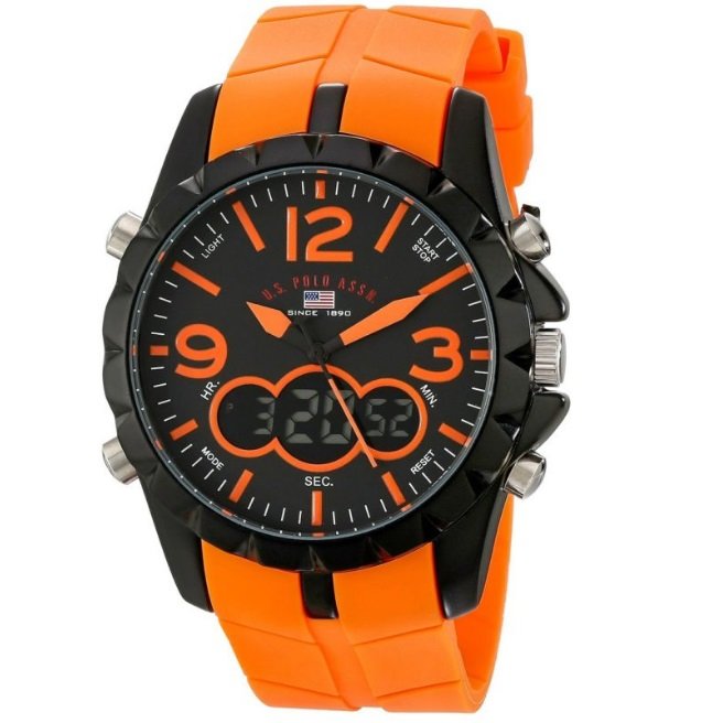 Proizvođač klasičnih kvarcnih satova također je vrlo jak protivnik prvenstva u kategoriji sportskih uređaja. Moramo priznati da sportska serija ove marke nije toliko popularna kao njezin izravni konkurent u kategoriji, ali općenito je u stalnoj potražnji među aktivnim stanovništvom. Vodeća linija - SAD Polo assn. Sportski sportaši US9061 i SAD Polo assn. Sport Men's US9057, - gumeni sat sa širokim i zanimljivim brojčanikom koji sadrži analogne i digitalne zaslone za prikaz vremena i dodatnih očitavanja (štoperica i timer). Pouzdan mehanizam, dobra rasvjeta i cjelokupni dizajn čine vas na tvrtku samo na pozitivan način, koji zapravo čini sretne korisnike, pa čak i neke stručnjake.