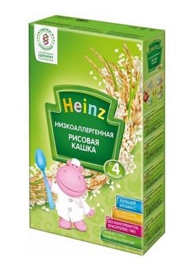 Heinz je lider u žitaricama bez glutena. Većina pedijatara preferira ovu tvrtku, koja se etablirala kao proizvođač visoke kvalitete. Sastav ne sadrži gluten, šećer, sol, konzervanse, okuse, boje, palmino ulje i zgušnjivače. Kaša je obogaćena inulinima - prebiotičkim vlaknima cikorije, vitaminima i mineralima. Dopušteno korištenje od 4 mjeseca.