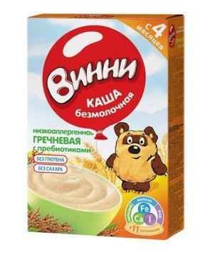 Winnie tvrtka je samo dobivanjem popularnost, međutim, ona je već uspio da se preporuči na dobru stranu. Niska cijena vam omogućuje da se natječete s eminentnijim brandovima. Zbog svoje kvalitetne kompozicije pogodan je za komplementarno hranjenje, počevši od 4 mjeseca. Obogaćen prebioticima, mineralima i vitaminima. Ne sadrži gluten, šećer i sol, palmino ulje i umjetne dodatke. Slaba alergija. Ne zahtijeva vrenje. Od negativnih aspekata netizens primijetio formiranje lumps. Pošteno, napominjemo da ako se razrijede prema uputama, ne bi se smjele pojaviti.