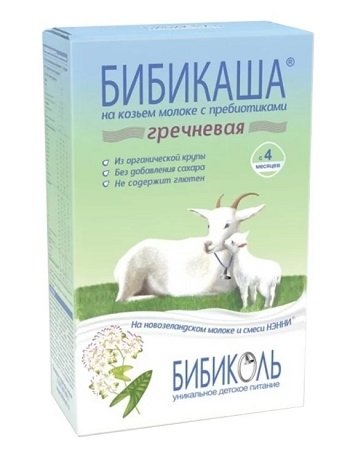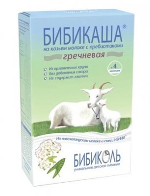 Hranjiva i hipoalergena kaša na kozjem mlijeku ima ugodan okus i miris, savršeno zasićuje i što je najvažnije, ne uzrokuje negativne učinke kod djece s intolerancijom na kravlji protein. "Bibikasha" je dostupan u nekoliko varijanti - od organske heljde, riže, kukuruza i zobi. Uključeno je i punomasno mlijeko dobiveno od novozelandskih koza, uzgojeno u ekološki čistoj okolini, mala količina zdravih biljnih ulja, minerala, vitamina i prebiotički kompleks.
