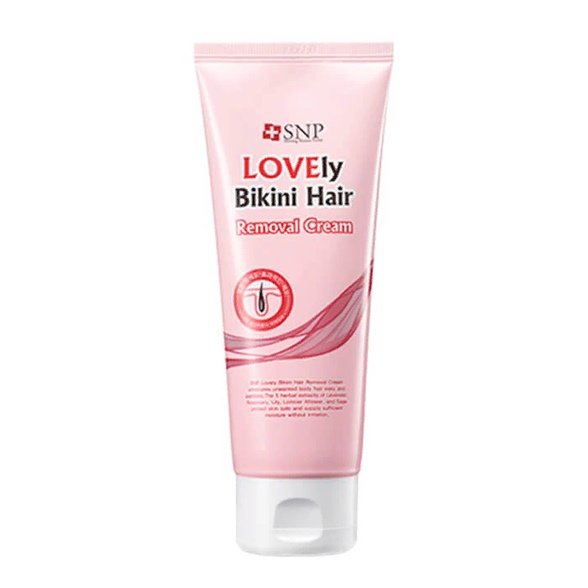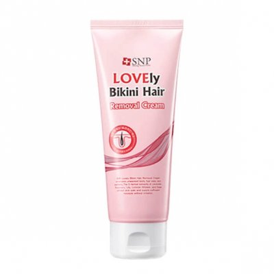 Sastav kreme popularne marke u Koreji SNP razvijen je posebno za depilaciju intimnog područja. Proizvod ima najsnažniji, ali blagi učinak na kosu u bikini zoni zbog upotrebe zasićenih biljnih ljekovitih sastojaka od strane proizvođača. Ulja duda, obavijajući kožu, djeluju kao zaštitna barijera protiv kemijskih sastojaka kreme. Koncentrirano suncokretovo ulje savršeno hrani, vraća mekoću; sok od aloe ima najbolja protuupalna svojstva; ekstrakti zelenog čaja stimuliraju regenerativne procese epidermisa. SNP Lovely Bikini krema za uklanjanje dlačica 10-15 minuta uništava keratinska vlakna kose, nakon čega se lako uklanja zajedno s kosom s lopaticom uključenom u komplet.