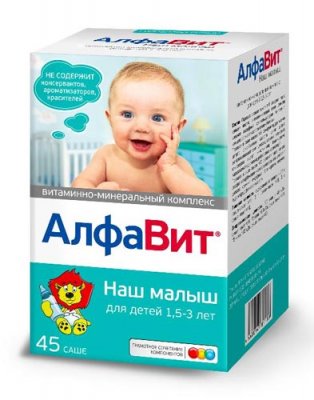 Posebnost vitamina kompleksa "AlfaVit Naša beba" je jedinstvenost razvoja sastava u skladu sa znanstvenim preporukama za zajednički i odvojeni prijem.Takav pristup smanjuje rizik od alergija, a učinkovitost primjene kao preventivne mjere povećava se na 50% u usporedbi s analozima. Kompleks sadrži 11 vitamina i 5 minerala. Dizajniran za djecu od 1,5 do 3 godine.