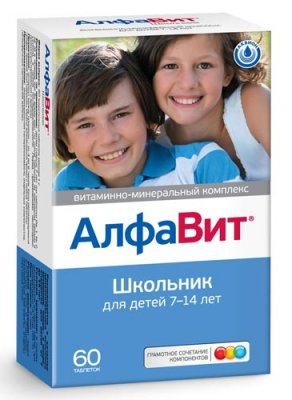 "Alphabet Schoolboy" - vitamini za djecu (7-14 godina). Liječnici napominju da je to jedan od najkompetentnijih i potpuno formuliranih lijekova - sadrži 13 vitamina i 10 minerala. S obzirom na činjenicu da je tijekom razvoja formule uzeta u obzir savjet liječnika u vezi uzimanja supstanci (zglobova / odvojenih), ovaj kompleks može se pohvaliti smanjenim rizikom od razvoja alergija.