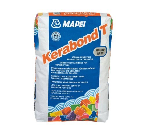 Za polaganje teških mozaik pločica na strop, pod ili zidove, preporučuje se Mapei Kerabond T ljepilo, koje je dostupno u sastavu bijelog i sivog cementa. Visoka sposobnost lijepljenja omogućuje postavljanje materijala za pločice na horizontalnim i vertikalnim površinama. U isto vrijeme, stručnjaci bilježe odsutnost puzanja ili pada. Smjesa ima visoku otpornost na vlagu, što je posebno važno kod polaganja pločica u kadi. Proizvod karakterizira dugoročna održivost (8 sati), mogućnost korištenja podnog grijanja. Master može izvršiti podešavanje unutar 45 minuta nakon lijepljenja pločica.