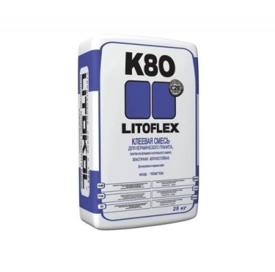 Jedno od najboljih ljepila za crijep za univerzalnu uporabu je sastav Litoflex K80 talijanske tvrtke Litokol. Koriste ih ruski finišeri kada moraju postaviti različite vrste pločastih materijala. Ljepilo će se nositi ne samo s učvršćivanjem pločica unutar prostorija, već se može koristiti i za vanjsku uporabu. Smjesa se izrađuje na cementnoj bazi, ali zbog dodavanja sintetičkih smola, proizvođač je uspio postići visoku elastičnost šava. Stručnjaci bilježe veliku adheziju, otpornost na vlagu, štetnost za okoliš. Opseg proizvoda je širok, zidovi i podovi unutar prostorija, stepenice, terase, balkoni i fasade. Ljepilo prodire duboko u podlogu, stoga je pogodno za beton, cement-pijesak, gipsane ploče, kao i za grijane podove.