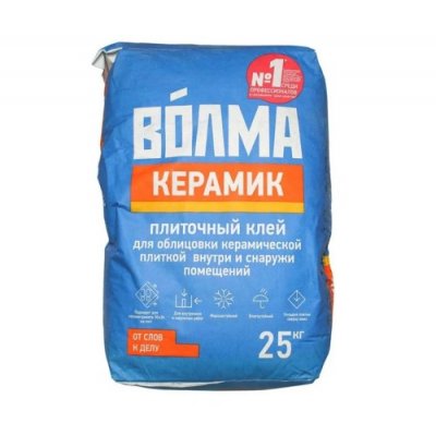 Volma, poznati domaći proizvođač mješavina za suhu gradnju, uspio je stvoriti najpristupačnije ljepilo za pločice. Proizvod s nazivom Keramika ima u potpunosti najbolje kvalitete sastava cementa. Profesionalni tileri naglašavaju održivost otopine, pripremljeno ljepilo možete koristiti 3 sata.Istovremeno je moguće podesiti položaj pločice na 10 minuta. Kompozicija se dobro ponaša s različitom debljinom šava (2-5 mm), ako se rad obavlja standardnim keramičkim pločicama. Smjesa je prikladna za polaganje malog porculanskog kamena. Otpornost na smrzavanje ljepila (F35) omogućuje izvođenje radova na otvorenom, ne boji se sušenog šava i uvjeta vlažnih prostorija.