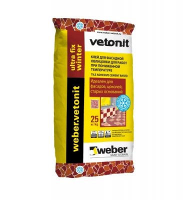 Prilikom polaganja pločica potrebno je pri negativnoj temperaturi Weber Ultra Fix Winter ljepilo biti najbolji izbor. Čak i na -10 ° C moguće je obavljati vanjske radove visoke kvalitete. Malo se natjecatelja može pohvaliti otpornošću na smrzavanje (preko 150 ciklusa). Takve jedinstvene sposobnosti su visoko cijenjene od strane ruskih graditelja pločica, oni preporučuju kupcima da kupe ovu kompoziciju za ukrašavanje rampe, terase, balkona i stepenica materijalima popločanim pločicama. Prednost mješavine je visoka adhezija na različite podloge, uključujući i vodonepropusne materijale. Jedina iznimka su bitumenski premazi. Što se tiče sastava vrsta pločica, šav može izdržati kameno posuđe velikog formata, keramiku, umjetni i prirodni kamen.