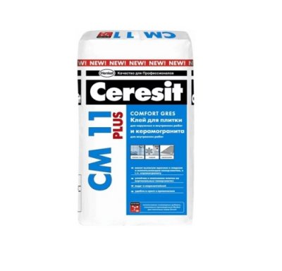 Stručnjaci koriste ljepilo Ceresit CM 11 Plus u najopremljenijim prostorijama za polaganje pločica. Njegova iznenađujuća otpornost na vlagu omogućuje da se mali zatvoreni bazeni završe materijalom popločanim pločicama. Zahvaljujući uvođenju posebnog elastofikatora, sastav savršeno prianja na deformabilne podloge (suhozid, grijani pod), keramičke obloge, mladi beton, blokove ćelija. Majstor mora miješati takav volumen otopine tako da ga može izvesti unutar 2 sata. Moguće je popraviti pločicu u prvih 20 minuta, nakon instalacije. Optimalna debljina sloja tilersa uzeti u obzir 7-8 mm.