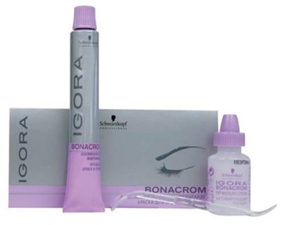 Boja za kosu i trepavice tvrtke Schwarzkopf Igor Bonacr - vođa glasovanja korisnika. Komplet uključuje cijev boje, oksidans, staklenku za uzgoj, zaštitne trake. Paleta od tri nijanse zbog nijansi aplikacije pretvara se u mnoge polutonove, omogućujući podešavanje intenziteta i dubine boje. Korisnici bilježe trajan rezultat - od 3 do 6 tjedana. Jednostavnost primjene. U procesu bojenja boja ne teče. Ekonomski trošak. U recenzijama se navodi da jedna boca traje gotovo 2 godine, što u potpunosti opravdava visoku cijenu. Nakon obojenja obrve izgledaju što prirodnije.