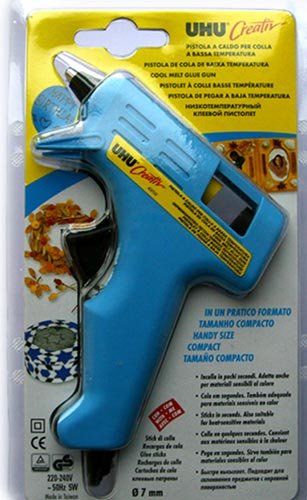 Pištolj za lijepljenje njemačke proizvodnje UHU Creativ pripada niskotemperaturnim uređajima. Temperatura tijekom rada je 110 ° C. To osigurava dodatnu sigurnost tijekom procesa, ali ne utječe na čvrstoću prianjanja. Alat se lako uklapa u ruku zbog svoje kompaktne veličine i lagan je. Može ljepiti sve materijale (uključujući osjetljive na toplinu, npr. Balone). Glina grabi u sekundi, što štedi vrijeme na određenom proizvodu.