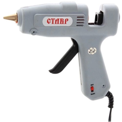 Sljedeći pištolj ljepila ima nisku cijenu i dobre tehničke karakteristike. Vrijeme zagrijavanja je samo 1 minuta. Druga važna točka je mala težina. To je jednako 390 g. Zahvaljujući ovom alatu lako je držati u ruci dugo vremena. Pištolj je prilično pouzdan sudeći prema ocjenama kupaca. Tijelo je izrađeno od visokokvalitetne plastike. Uključuje se s malom polugom na kućištu. Čim se Stavr PK-11/100 zagrije na željenu temperaturu, svjetlosni indikator će vas upozoriti o tome.