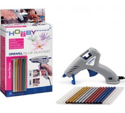 Model pištolja za ljepilo Dremel 930-18 HOBBY je dizajniran posebno za vježbanje rukotvorina. Ne koristi se u popravcima, jer karakteristike prilagođene izravno ukrasu. Potrebno je oko 5 minuta za zagrijavanje, maksimalna temperatura doseže 165 stupnjeva. Dizajn osigurava zaštitu od kapi i prilagodbe snage. Time se osigurava najučinkovitiji rad. Postoje dva temperaturna načina rada: 60 i 165 stupnjeva. Još jedna prednost alata je metalni vrh.