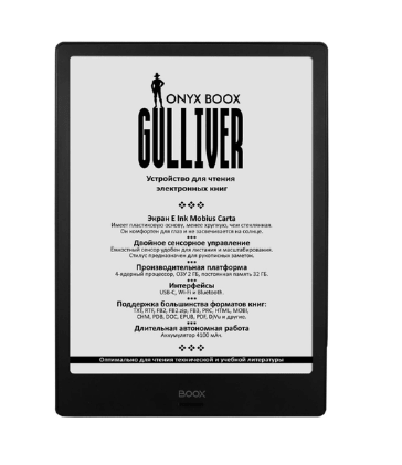 Ovo je najbolje ocijenjeni model za one koji vole čitati puno i udobno. Dijagonala zaslona je 13,3 inča, rezolucija 2200x1650. Radi na Android operativnom sustavu, "čita" gotovo sve poznate formate, ima ugrađeni diktafon i mogućnost reprodukcije audioknjiga, podržava microSD, microSDHC. Također, proizvođač je osigurao ugrađenu memoriju od 32 GB za pohranu u memoriji zbirke tekstualnih datoteka i audio knjiga. Zbog povećanog kapaciteta baterije, trajanje rada nakon jednog punjenja je do 20.000 stranica. To je model u kojem je jednostavan popis tehničkih karakteristika dovoljan da se shvati da nema mnogo analoga na ruskom tržištu.