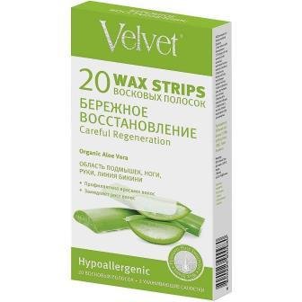 Žametne trake voska pažljivo uklanjaju čak i kratke i tanke vlasi. Set uključuje vlažne maramice, eliminirajući nelagodu i uklanjanje preostalog voska. Rezultat će biti dovoljan za 3-4 tjedna. Paketi od 10 i 20 nalaze se na tržištu, dok svako pakiranje ima zaštitnu traku kako bi se spriječilo ispadanje traka. Pros: siguran sastav, udobna veličina, dobra hidratacija kože.