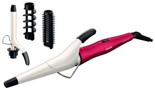 U TOP-u je bilo mjesto za multi-styler Philips HP8697. Radna površina je obložena keramikom. Komplet uključuje pincete za izradu tanjih uvojki (16 mm), četkicu za dodatnu količinu kose, spiralni privjesak za oblikovanje i konusne pincete za prirodne uvojke. Konusno kovrčavo željezo opravdava očekivanja postavljena na njega, omogućujući vam da napravite spektakularnu frizuru na srednjoj i dugoj kosi. Kabel napajanja 1,8 m, okreće se. Maksimalna temperatura je 190 ° C, postoji zaštita od pregrijavanja.