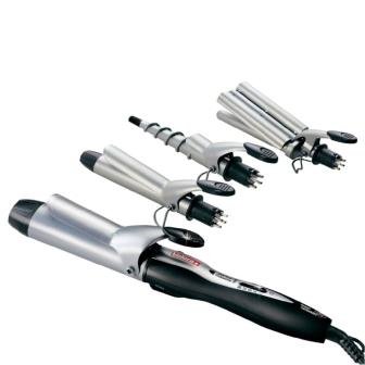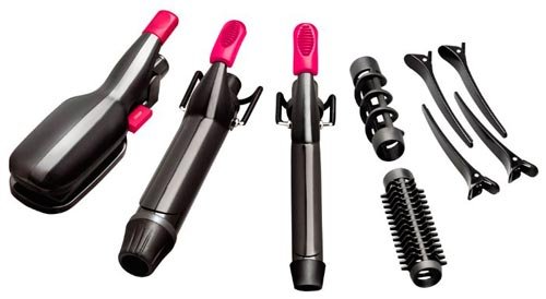 Ako želite svakodnevno stvarati nove frizure, preporučujemo da odaberete set pinceta za profesionalno modeliranje Valera Ionic Multistyle Professional 640.01.Sastoji se od univerzalne glačalice i 4 mlaznice, koje se razlikuju po promjeru i obliku. Lijep bonus je praktična torba za spremanje i nošenje. Mašina za kovrčanje je vrlo pogodna u primjeni, zagrijava se za 1 minutu. Postoji 5 temperaturnih režima: od 100 do 190 ° C. Funkcija ionizacije sprječava gubitak vlage, čineći kovrče glatkom i svilenkastom.