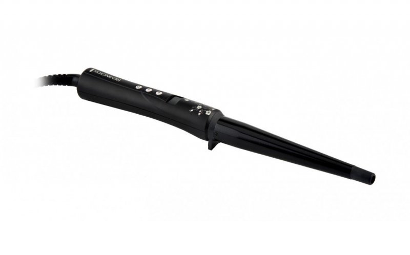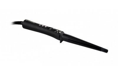 Konusna kotrljača BaByliss BAB2669ORCE, koja je zauzela prvo mjesto u TOP-u, može se pohvaliti najboljim premazom - keramika s dodatkom titana i turmalina. To znači da nema potrebe brinuti o sigurnosti kose tijekom procesa uvijanja. Ne samo da se kovrče neće spaliti i sušiti, nego će također dobiti dio pozitivnog utjecaja.Čak ni redovita uporaba ne boli. Promjer konusa: od 19 do 32 mm. Rezultat: elastične i elegantne kovrče, koje su posebno djelotvorne na dugoj kosi.