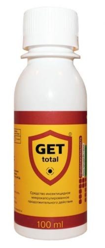 Znači "GET" - jedan od najpopularnijih na domaćem tržištu. Unatoč visokim troškovima, često ih kupuju i profesionalne službe i obični ljudi. Glavna prednost je dugo razdoblje valjanosti (oko 6 mjeseci). Predstavlja bijelu koncentriranu tekućinu ugodnog mirisa, koja je vrlo atipična za ovu vrstu proizvoda. Jedan paket je dovoljan za obradu sobe od 20 m2. Tijekom postupka nema potrebe za uklanjanjem životinja ili ljudi iz stana, jer Lijek je siguran za zdravlje. Još jedna prednost je potpuno uništenje čak i ličinki stjenica.