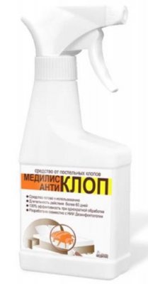 Na čelu ljestvice nalazi se lijek s izvrsnim sastavom i recenzijama - Medilis-Anti-CLOP. Alat brzo djeluje na parazitske štetnike zbog tri glavne komponente: tetrametrin, cipermetrin, permetrin. Zajedno tvore složenu formulu koja ima smrtonosni učinak na stjenice i njihove ličinke. Dostupan u praktičnom pakiranju s sprejom. Medilis-Anticlope je odmah spreman za uporabu, ne treba ga razrjeđivati ili izlijevati. Razlikuje se po jednostavnosti pri korištenju, jedinstvenoj strukturi i ekonomičnoj potrošnji. Glavna prednost lijeka je apsolutna sigurnost za ljudsko tijelo. Visoka učinkovitost uz neškodljivost stavlja Medilis-Anti-CLOP na vrh rejtinga.