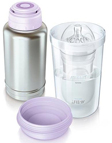 - vrsta, Pogodno je za šetnju uzeti termoske grijače i one namijenjene za putovanje automobilima. Kod kuće, model u obliku sterilizatora postat će nezamjenjiv, što će također osigurati higijenu dječje hrane.
