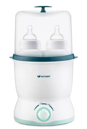 Graciozan uređaj za obavljanje potrebnih funkcija uživa popularnost među majkama. Rastavljeni Kitfort KT-2302 sastoji se od držača, kućišta s posudom i grijaćeg elementa, poklopca i košare. Uređaj ima termostat s kojim možete podesiti željenu temperaturu od 40 do 100 stupnjeva. Najbolje svojstvo uređaja je sterilizacija boca. Stavljajući uređaj na taj način, svi mikrobi će biti uništeni. Za zagrijavanje hrane za dojenčad, vode ili izraženog mlijeka, postavite temperaturu grijanja na 40 stupnjeva, za konzerviranu hranu - 70, a za dezinfekciju - 100.