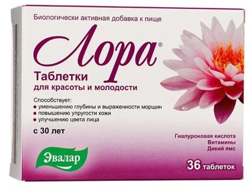 Tablete "Laura" popularnog domaćeg proizvođača kreirane su na temelju jedinstvene formule osmišljene za žene nakon 30 godina. Lijek na bazi hijaluronske kiseline, kao i drugi jednako korisni elementi, osmišljen je kako bi održao mladost i ljepotu kože. Uočljivo se bori s formiranjem bora, nepravilnostima. Vitamin C regulira cirkulaciju krvi, a E je odgovoran za žensku ljepotu. Jedna kutija od 60 tableta dovoljna je za 2 mjeseca uporabe. Nakon 30 dana primjene vidljiv je rezultat - koža postaje zategnutija, elastična. Bez muke prije menstrualnog ciklusa.