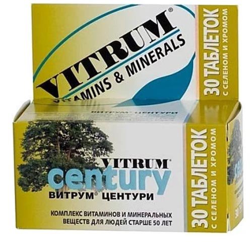 Vitrum Centuri je jedan od najčešće propisanih vitaminskih kompleksa za žene starije od 50 godina. Liječnici se slažu oko velikih prednosti i visoke kvalitete lijeka. Među komponentama su biotin, askorbinska kiselina, vitamini B6, D3, B1, E, A, K1, magnezij, fosfor, kalij, željezo, cink, kalcij. Bogatstvo skladbe jednostavno je nevjerojatno. Jedinstvena kombinacija korisnih elemenata u tragovima pruža izvrsne rezultate. "Vitrum" je indiciran za uporabu u avitaminozama, intenzivnim opterećenjima, tijekom rehabilitacijskog razdoblja. Ima prikladnu dozu (1 tableta 1 puta dnevno) i ekonomičnu potrošnju.