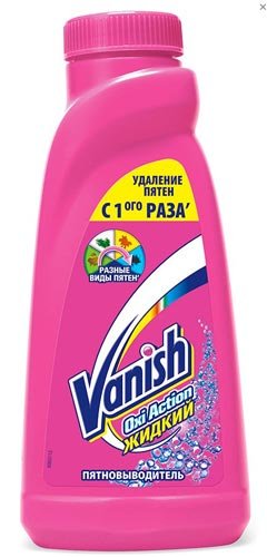 Vanish Oxi Action je univerzalni lijek protiv jakih mjesta za bijelu i boju. Učinkovito se nosi s onečišćenjem različitog podrijetla. Može se birati između nekoliko načina primjene: može se koristiti za automatsko pranje, kada se natapa, ili se može distribuirati izravno na mrlju. "Vanish" ima aktivan utjecaj na onečišćenje zbog komponente kisika. To pridonosi očuvanju izvorne boje stvari i nema destruktivno djelovanje na tako osjetljive tkanine kao što je vuna, svila. Recenzije kupaca sugeriraju brzo i učinkovito uklanjanje mrlja s ovim alatom. Svoj zadatak rješava u 90% slučajeva. Još jedna prednost je sigurnost. Ne sadrži štetne tvari koje negativno djeluju na kožu.