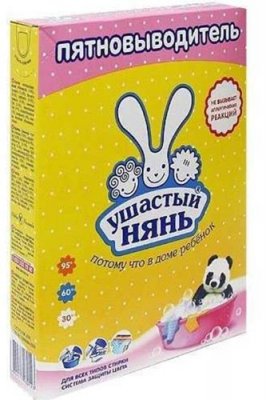Uklanjanje mrlja iz ruske tvrtke Ushasti Nyan jedna je od najprodavanijih na domaćem tržištu. Nije bez sumnje da je na prvom mjestu među najboljima. Kupujete ga, dobivate odličan rezultat po niskoj cijeni. Visoka kvaliteta omogućuje intenzivno čišćenje dječje odjeće od raznih vrsta onečišćenja. Alat je pogodan za ručno pranje ili uz pomoć stroja za pisaće strojeve. Za maksimalni učinak preporučuje se miješanje s običnim prahom. Sredstvo za uklanjanje mrlja otporno je na različite temperature pa je dopušteno koristiti i toplu i hladnu vodu. Hipoalergena formula štiti osjetljivu kožu beba. Ovaj alat se može koristiti za obojene stvari i bijelu posteljinu. Glavna prednost proizvoda je njegova svestranost. Dostupan u obliku praha, koji se dodaje u malim količinama, čime se osigurava njegova spora potrošnja.