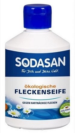 Njemački odstranjivač mrlja Sodasan privlači pažnju svojom neobičnom kompozicijom, kojoj u potpunosti nedostaju sve sintetičke komponente. Proizvođač obećava uklanjanje svih organskih prljavština i tvrdokornih mrlja samo s mješavinom alkohola, limunovog soka, goveđe žuči i prirodnih biljnih ulja. Tekućina ima prilično gustu konzistenciju, nalik na gel.Zbog toga je čak i tako mala količina (samo 300 ml) dovoljna za održavanje odjeće tijekom vrlo dugog vremenskog razdoblja. Proizvod je pogodan za većinu vrsta tkanina, ali može oštetiti proizvode izrađene od posebno osjetljivih materijala (npr. Svile, vune, lana ili viskoze). Za stare mrlje preporučuje se lokalno nanošenje gela, a da bi se povećala ukupna učinkovitost pranja, sredstvo za uklanjanje mrlja dodaje se izravno u bubanj perilice.