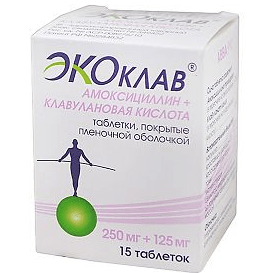 U ovom pripravku, učinak amoksicilina pojačan je klavulanskom kiselinom. Antibiotik ima baktericidno djelovanje, a kiselina ga podržava, osiguravajući veću učinkovitost lijeka. Alat ima širok spektar djelovanja, tako da pomaže kod gotovo bilo kojeg bolnog grla i bronhitisa, bez obzira koji mikroorganizmi uzrokuju. Zbog svoje visoke učinkovitosti, lijek se često propisuje za bolesti gornjeg i donjeg respiratornog trakta, kožne infekcije, osteomijelitis i druge ozbiljne bolesti.